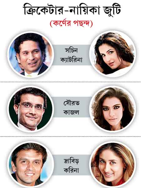 তিনজন ক্রিকেটারের নাম বলছি— এঁরা মনে করা যাক আপনার পরিচালনায় বলিউডে অভিনয় করবেন। রাহুল, সৌরভ, সচিন। নায়িকা হিসেবে কাকে কাকে বাছবেন?