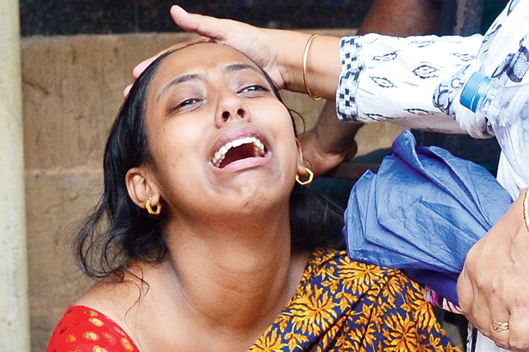 শোকার্ত স্ত্রী গীতশ্রী। শনিবার।