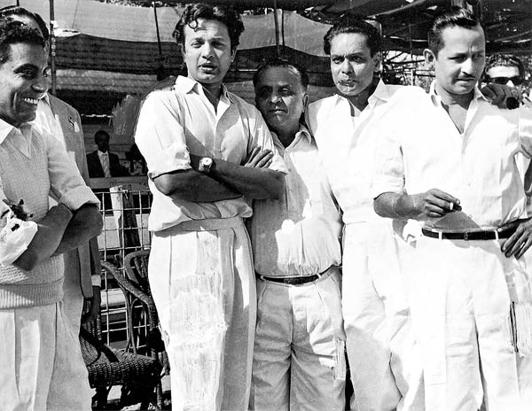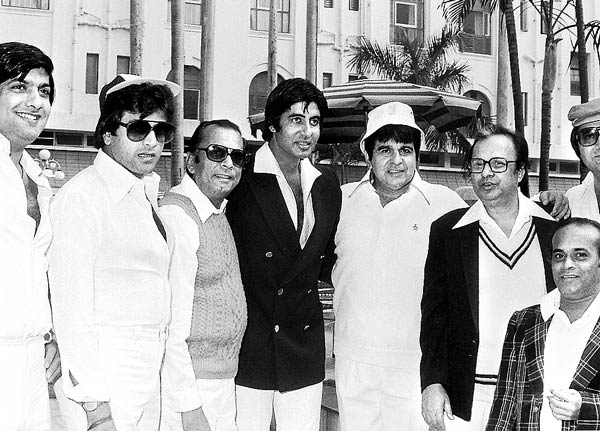 একটি প্রদর্শনী ম্যাচের আগে জিতেন্দ্র, জনি ওয়াকার, অমিতাভ বচ্চন, দিলীপকুমার, অনিল চট্টোপাধ্যায় ও রবি ঘোষ