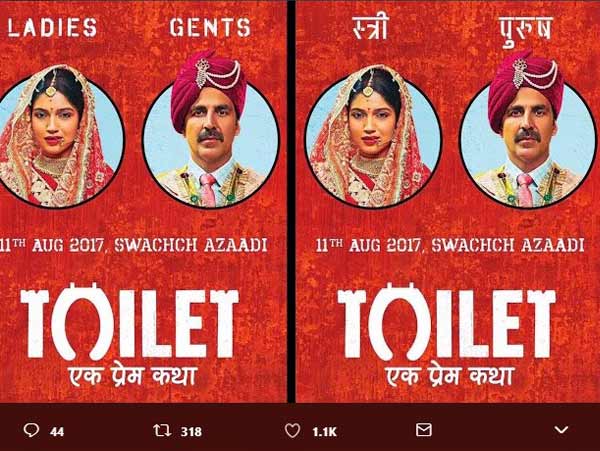 ‘টয়লেট: এক প্রেম কথা’র পোস্টার। ছবি: অক্ষয় কুমারের টুইটার পেজের সৌজন্যে।