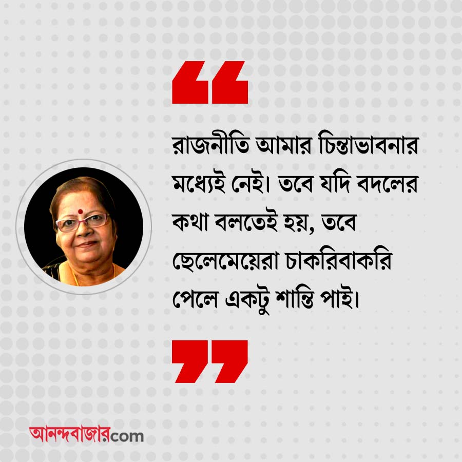 লিলি: এ ভাবে ভাবিনি কখনও। কিন্তু হলে মন্দ হয় না। পরীক্ষা দিলে বরং বোঝা যাবে যে, প্রার্থী রাজনৈতিক ভাবে আদপে কতটা সচেতন। তবে ভোটে জেতার পর আর পরীক্ষার প্রয়োজন রয়েছে বলে মনে হয় না। যিনি বিধায়ক হয়েছেন, তিনি তো তার মানে রাজনীতি বুঝেই এই কাজে এসেছেন। কিন্তু রাজনীতিতে নতুন হলে, তখন না হয় দরকার পড়তে পারে।