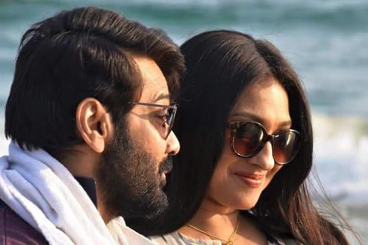 তখন বিকেল। অফিস থেকে হেঁটেই পৌঁছলাম সবচেয়ে কাছের হোটেলে। লিফটে চড়ে ওপরে উঠতেন দেখা মিলল তাঁদের। ধুতি-পাঞ্জাবিতে প্রসেনজিত্ চট্টোপাধ্যায় এবং শাড়ির মায়ায় ঋতুপর্ণা সেনগুপ্ত। ‘‘একটু ওয়েট কর। সকাল থেকে একটানা চলছে। কস্টিউম চেঞ্জ করে নিই’’ বললেন প্রসেনজিত্। পাশাপাশি দু’টো ঘরে চেঞ্জের জন্য ঢুকে পড়লেন তাঁরা।
