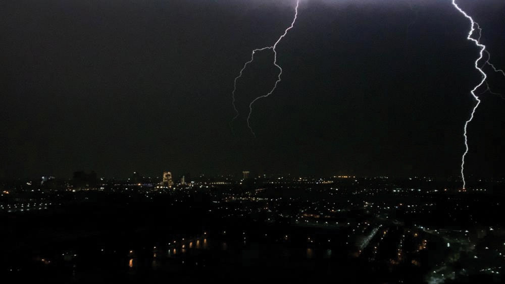 রাতের আকাশ ছিন্নভিন্ন করা বিদ্যুৎশিখা বন্দি অরিন্দমের ক্যামেরায়।