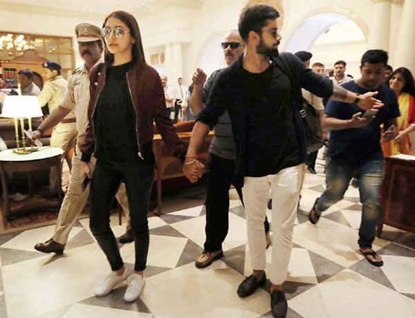 জন্মদিনে হোটেলের লবিতে বিরাট-অনুষ্কা। ছবি: ইনস্টাগ্রামের সৌজন্যে।