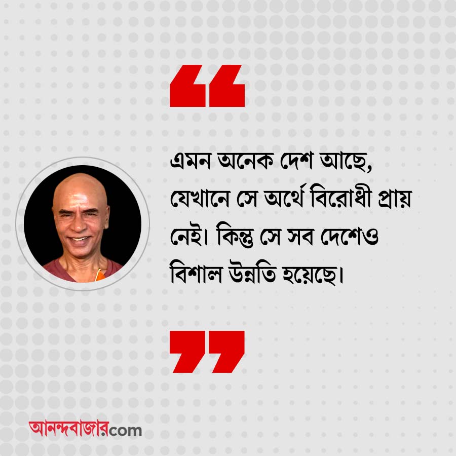 গৌতম: এমন অনেক দেশ আছে, যেখানে সে অর্থে বিরোধী প্রায় নেই। কিন্তু সে সব দেশেও বিশাল উন্নতি হয়েছে। কথা হচ্ছে, দিনের শেষে উন্নতি করতেই হবে। আমি একটা জায়গা একেবারে ঝাড়েবংশে বিরোধীশূন্য করে দিলাম, কিন্তু উন্নতি করতে পারলাম না! তখন কী হবে?