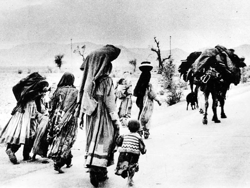 পঞ্জাব সীমান্ত পেরিয়ে ভারতের পথে শরণার্থীরা। ছবি: আনন্দবাজার আর্কাইভ থেকে।