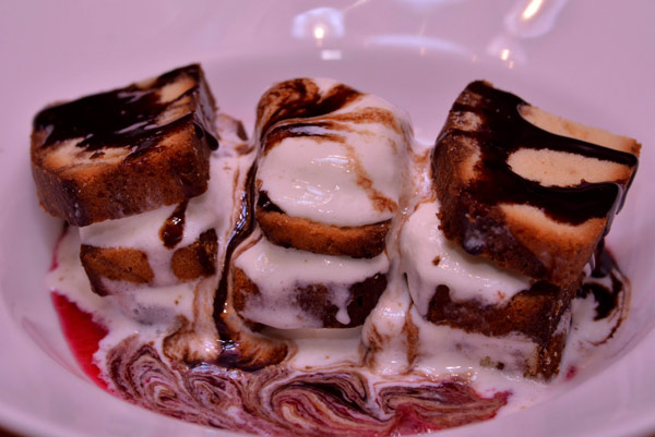 শেষ পাতে ডেজার্ট না হলে কি আর মন ভরে! এরকমই এক মন ভরানো ডেজার্ট বানালেন শেফ রোজারিওর সহযোগী কন্যা শেফ ক্রিষ্টিনা দোয়েল। স্ট্রবেরি ক্রাশ আর চকোলেট সসে মাখোমাখো ভ্যানিলা আইসক্রিমের পরতের মধ্যে তুলতুলে নরম প্লাম কেক। কেকের মধ্যে রামে ভেজানো ড্রাই ফ্রুটের মধুর বিস্ফোরণ। অমৃতের স্বাদ মুখে লেগে থাকে বহু ক্ষণ। বলতে ইচ্ছে করে আবার আসিব ফিরে।