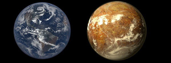 পৃথিবী (বাঁ দিকে) ও প্রক্সিমা সেনটাওরি-বি