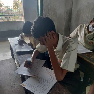 মনোযোগ সহকারে পড়ুয়ারা পরীক্ষা দিচ্ছে