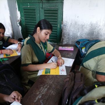 মনোযোগ সহকারে পরীক্ষা দিচ্ছে এক পড়ুয়া