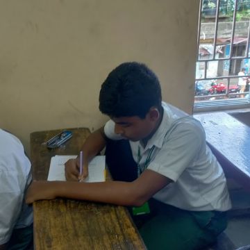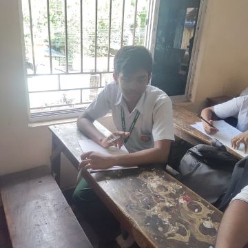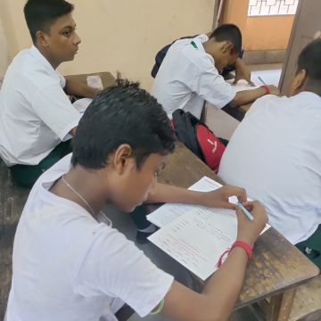 প্রশ্নপত্রে মনোনিবেশ করছে এক পড়ুয়া
