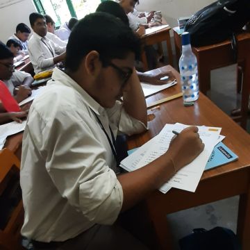 পরীক্ষা দিতে ব্যস্ত এক পড়ুয়া