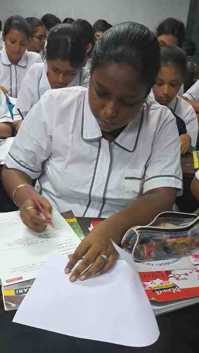 প্রশ্নপত্রে মনোনিবেশ করছে এক শিক্ষার্থী