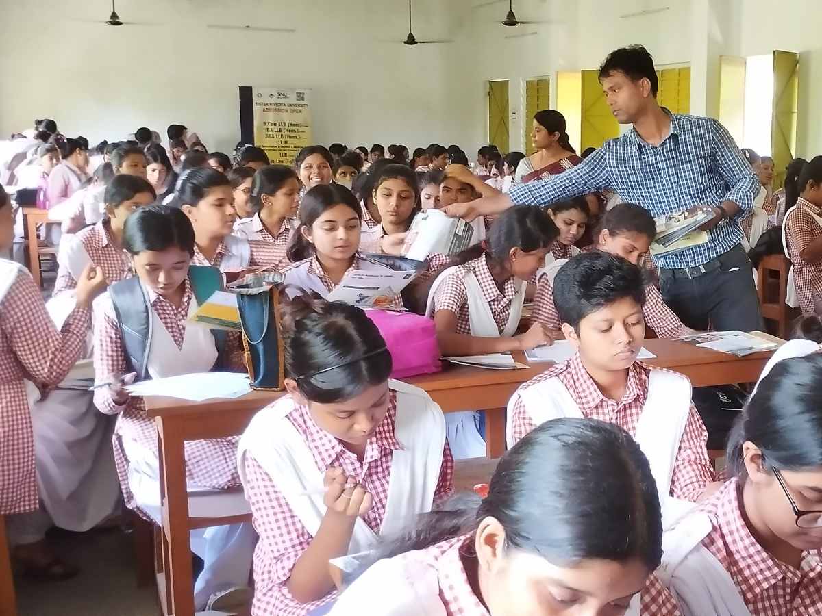 মনোযোগ সহকারে পরীক্ষা দিতে ব্যাস্ত পড়ুয়ারা