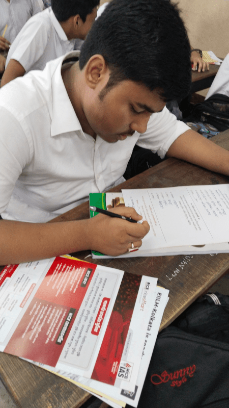 শব্দের ধাঁধার সমাধানে ব্যস্ত পড়ুয়ারা