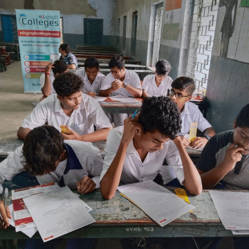 মনোযোগ সহকারে প্রশ্নপত্র পড়ছে এক পড়ুয়া