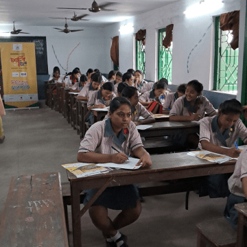 মনোযোগ সহকারে শব্দের ধাঁধার খোঁজে পরেশনাথ বালিকা বিদ্যালয় পড়ুয়ারা