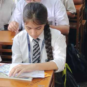 মনোযোগ সহকারে পরীক্ষা দিচ্ছে এক শিক্ষার্থী