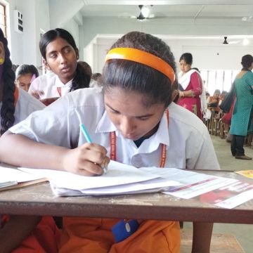 মনোযোগ সহকারে পরীক্ষা দিচ্ছে এক পড়ুয়া