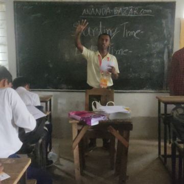 পরীক্ষা শুরু হবার আগে পরীক্ষক শব্দ-জব্দের নিয়মাবলি বুঝিয়ে দিচ্ছেন পড়ুয়াদের