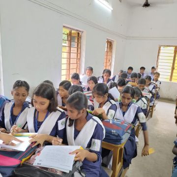প্রশ্নপত্রে মনোনিবেশ করছে পড়ুয়ারা