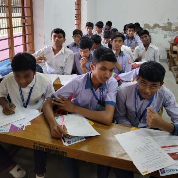 ক্যামেরায় ফ্রেমবন্দি শিক্ষার্থীদের পরীক্ষা দেবার এক মুহূর্ত