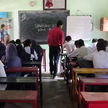 মনোযোগ দিয়ে পরীক্ষা দিচ্ছে এক শিক্ষার্থী