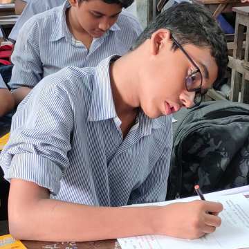 মনোযোগ সহকারে পরীক্ষা দিচ্ছে এক শিক্ষার্থী