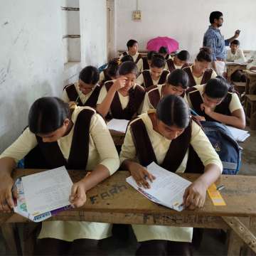 প্রশ্নপত্রে মনোনিবেশ করছে পড়ুয়ারা