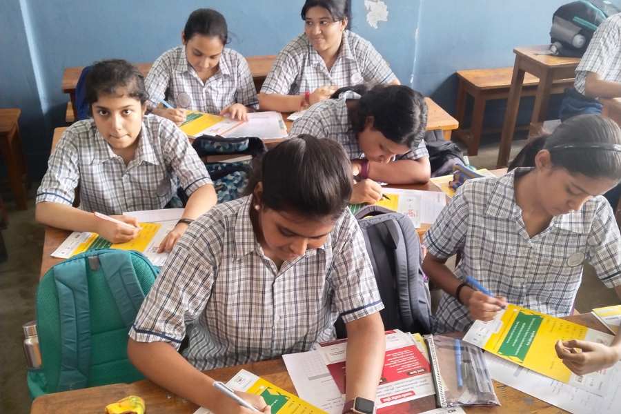 প্রশ্নপত্রে মনোনিবেশ করছে পড়ুয়ারা