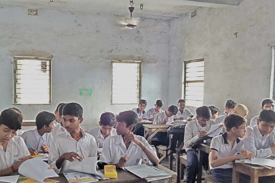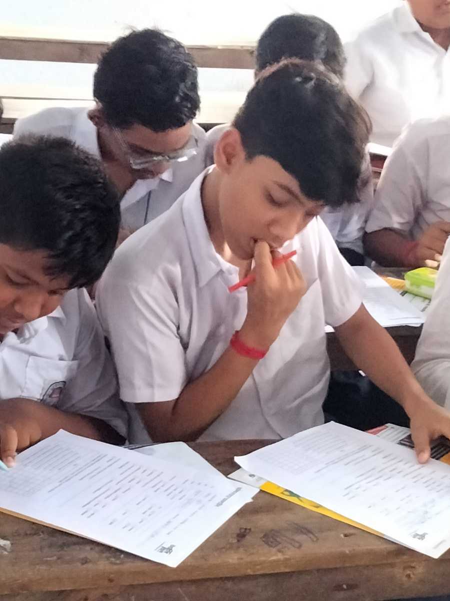 প্রশ্নপত্রে মনোনিবেশ করছে এক পড়ুয়া