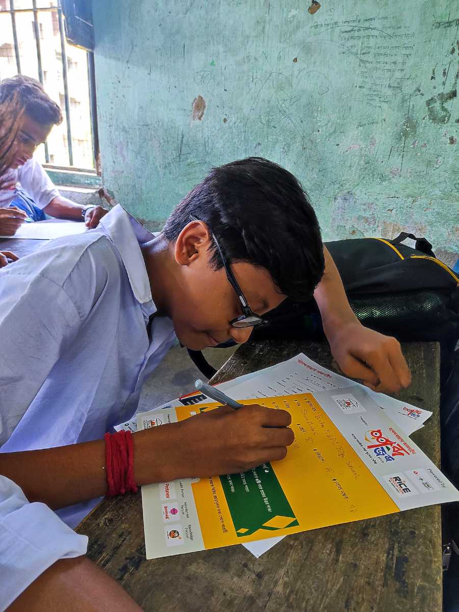শব্দের পরীক্ষা দিতে পেতে উচ্ছ্বাসিত এক পড়ুয়া