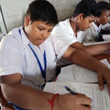 মনোযোগ সহকারে পরিক্ষা দিচ্ছে এক পড়ুয়া