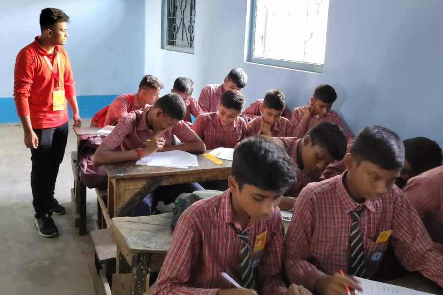 পরীক্ষার মাঝে পড়ুয়াদের সাহায্য করছে পরীক্ষক