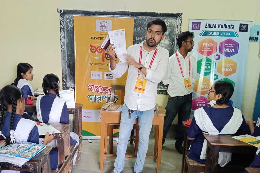 শব্দ-জব্দ ২০২৩ — ক্যুইজের আদলে বাংলা শব্দের বিভিন্ন মজার খেলা নিয়ে রাজ্যের ১৫৩টি স্কুলে হাজির আনন্দবাজার অনলাইন। লক্ষ্য ছিল শিক্ষার্থীদের বাংলা ভাষার দক্ষতাকে সুচারু ও সুনিপুণ করে তোলার। সর্বোপরি মাতৃভাষার শিকড়ের সঙ্গে নতুন প্রজন্মকে জুড়ে রাখার। ‘শব্দ-জব্দ ২০২৩’ সেই লক্ষ্যে সফল। প্রতিযোগিতার চূড়ান্ত পর্বে আনন্দবাজার অনলাইন খুঁজে পেয়েছে বাংলার সেরা তিন স্কুলকে।