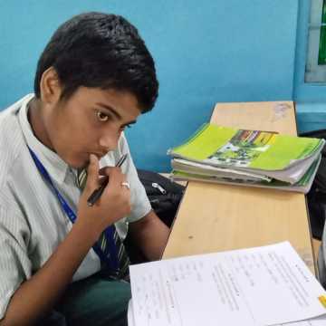 শব্দ নিয়ে চিন্তায় মগ্ন এক শিক্ষার্থী