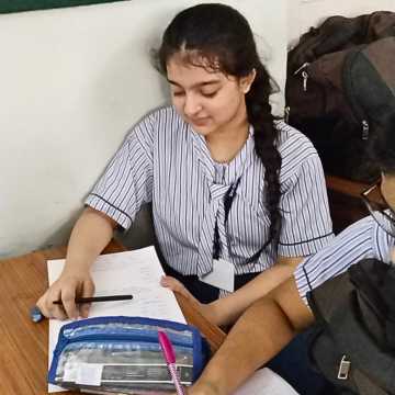 প্রশ্নপত্রে মনোনিবেশ করছে এক শিক্ষার্থী