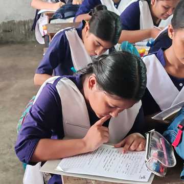 প্রশ্নপত্রে মনোনিবেশ করছে এক পড়ুয়া