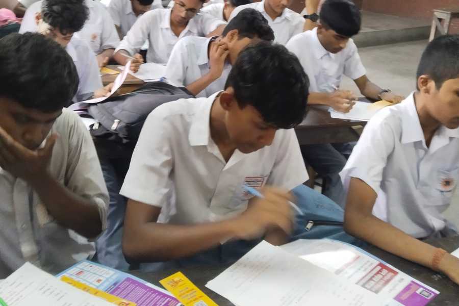 প্রশ্নপত্রে মনোনিবেশ করছে পড়ুয়ারা