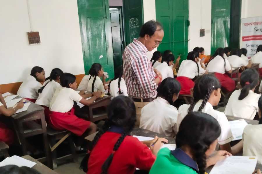 শব্দের পরীক্ষার মাঝে চলছে পড়ুয়াদের মধ্যে কথোপকথন