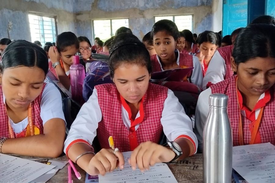 মনযোগ সহকারে প্রশ্ন পড়ছে পড়ুয়ারা