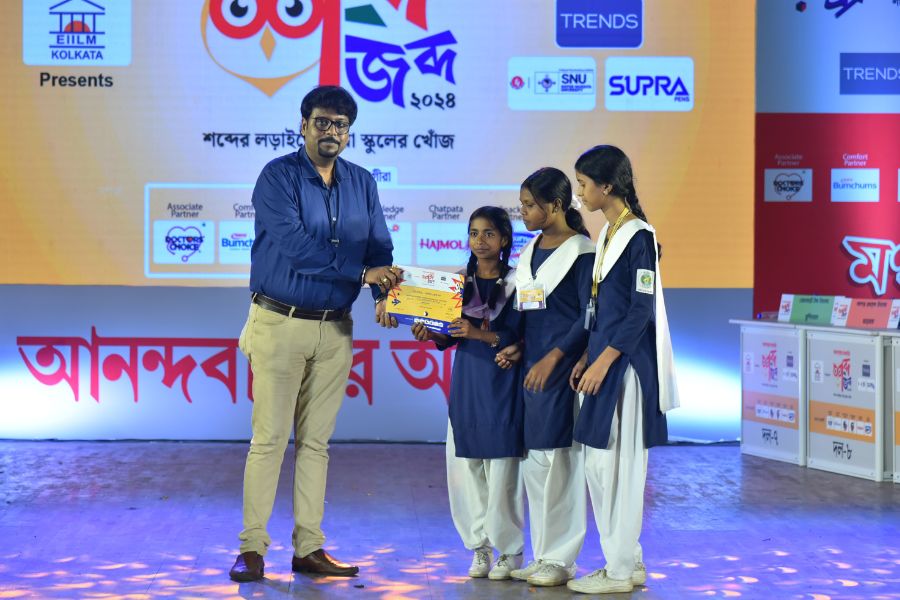 শব্দ-জব্দ ২০২৪ — ক্যুইজের আদলে বাংলা শব্দের বিভিন্ন মজার খেলা নিয়ে রাজ্যের ১২টি জেলার ২০৮টি স্কুলে হাজির হয়েছিল আনন্দবাজার অনলাইন। লক্ষ্য ছিল শিক্ষার্থীদের বাংলা ভাষার দক্ষতাকে সুচারু ও সুনিপুণ করে তোলার। সর্বোপরি মাতৃভাষার শিকড়ের সঙ্গে নতুন প্রজন্মকে জুড়ে রাখার। ‘শব্দ-জব্দ ২০২৪’ সেই লক্ষ্যে অনেকটাই সফল।