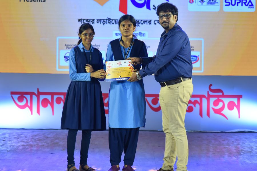শব্দ-জব্দ ২০২৪ — ক্যুইজের আদলে বাংলা শব্দের বিভিন্ন মজার খেলা নিয়ে রাজ্যের ১২টি জেলার ২০৮টি স্কুলে হাজির হয়েছিল আনন্দবাজার অনলাইন। লক্ষ্য ছিল শিক্ষার্থীদের বাংলা ভাষার দক্ষতাকে সুচারু ও সুনিপুণ করে তোলার। সর্বোপরি মাতৃভাষার শিকড়ের সঙ্গে নতুন প্রজন্মকে জুড়ে রাখার। ‘শব্দ-জব্দ ২০২৪’ সেই লক্ষ্যে অনেকটাই সফল।