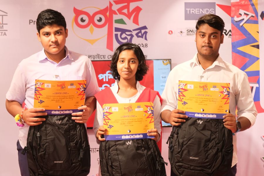 শব্দ-জব্দ ২০২৪ — ক্যুইজের আদলে বাংলা শব্দের বিভিন্ন মজার খেলা নিয়ে রাজ্যের ১২টি জেলার ২০৮টি স্কুলে হাজির হয়েছিল আনন্দবাজার অনলাইন। লক্ষ্য ছিল শিক্ষার্থীদের বাংলা ভাষার দক্ষতাকে সুচারু ও সুনিপুণ করে তোলার। সর্বোপরি মাতৃভাষার শিকড়ের সঙ্গে নতুন প্রজন্মকে জুড়ে রাখার। ‘শব্দ-জব্দ ২০২৪’ সেই লক্ষ্যে অনেকটাই সফল।