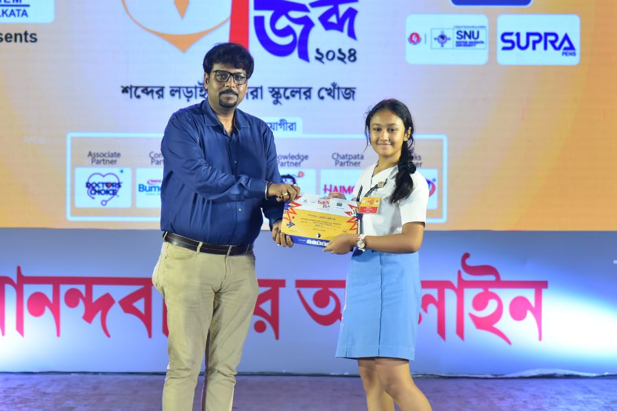 শব্দ-জব্দ ২০২৪ — ক্যুইজের আদলে বাংলা শব্দের বিভিন্ন মজার খেলা নিয়ে রাজ্যের ১২টি জেলার ২০৮টি স্কুলে হাজির হয়েছিল আনন্দবাজার অনলাইন। লক্ষ্য ছিল শিক্ষার্থীদের বাংলা ভাষার দক্ষতাকে সুচারু ও সুনিপুণ করে তোলার। সর্বোপরি মাতৃভাষার শিকড়ের সঙ্গে নতুন প্রজন্মকে জুড়ে রাখার। ‘শব্দ-জব্দ ২০২৪’ সেই লক্ষ্যে অনেকটাই সফল।