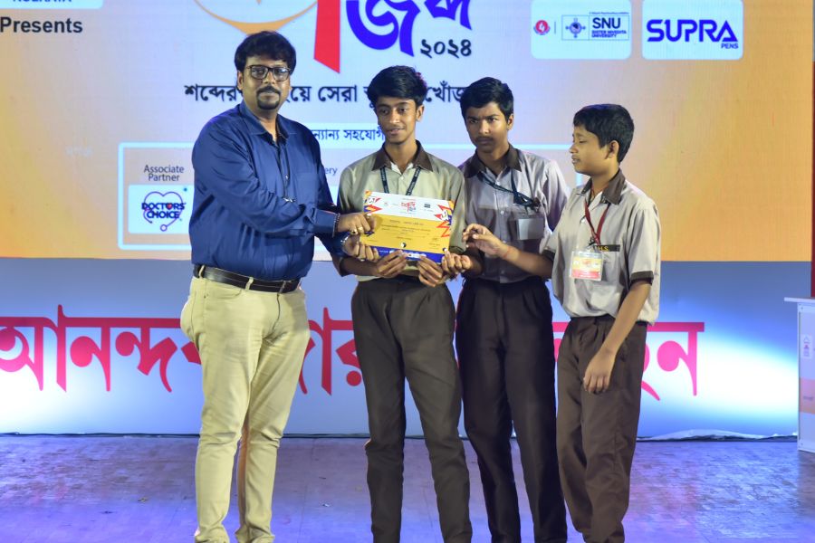 শব্দ-জব্দ ২০২৪ — ক্যুইজের আদলে বাংলা শব্দের বিভিন্ন মজার খেলা নিয়ে রাজ্যের ১২টি জেলার ২০৮টি স্কুলে হাজির হয়েছিল আনন্দবাজার অনলাইন। লক্ষ্য ছিল শিক্ষার্থীদের বাংলা ভাষার দক্ষতাকে সুচারু ও সুনিপুণ করে তোলার। সর্বোপরি মাতৃভাষার শিকড়ের সঙ্গে নতুন প্রজন্মকে জুড়ে রাখার। ‘শব্দ-জব্দ ২০২৪’ সেই লক্ষ্যে অনেকটাই সফল।