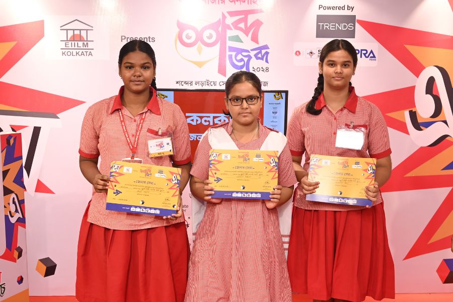 প্রথম তিনে না থাকলেও শব্দ-জব্দ ২০২৪-এ যে স্কুলগুলি দর্শকদের মন জয় করে নিল। ছবিতে কলকাতা জেলার মুরলীধর গার্লস স্কুলের শিক্ষার্থীরা।