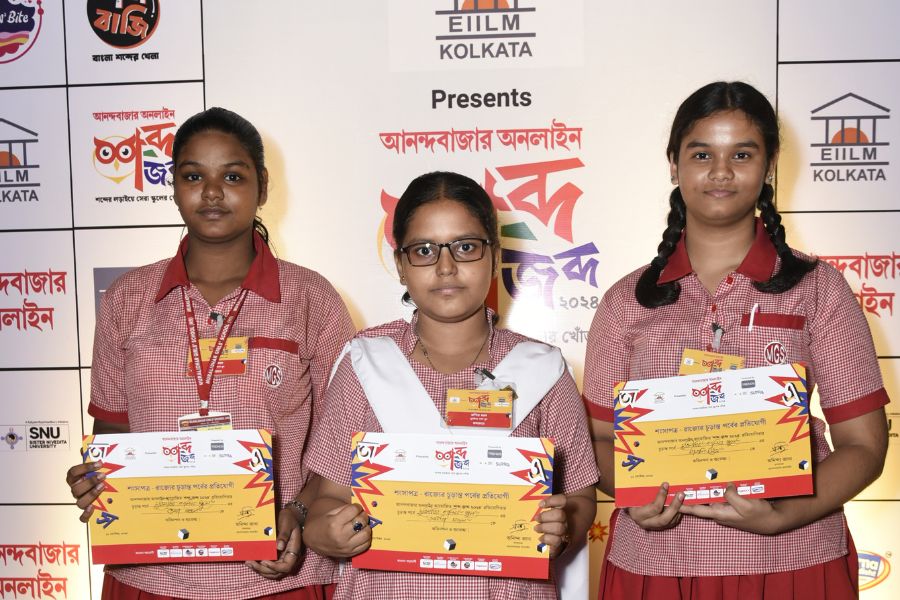 শব্দ-জব্দ ২০২৪ — ক্যুইজের আদলে বাংলা শব্দের বিভিন্ন মজার খেলা নিয়ে রাজ্যের ১২টি জেলার ২০৮টি স্কুলে হাজির হয়েছিল আনন্দবাজার অনলাইন। লক্ষ্য ছিল শিক্ষার্থীদের বাংলা ভাষার দক্ষতাকে সুচারু ও সুনিপুণ করে তোলার। সর্বোপরি মাতৃভাষার শিকড়ের সঙ্গে নতুন প্রজন্মকে জুড়ে রাখার। ‘শব্দ-জব্দ ২০২৪’ সেই লক্ষ্যে অনেকটাই সফল।