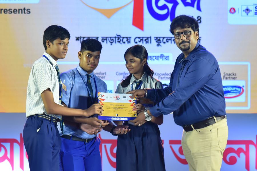 শব্দ-জব্দ ২০২৪ — ক্যুইজের আদলে বাংলা শব্দের বিভিন্ন মজার খেলা নিয়ে রাজ্যের ১২টি জেলার ২০৮টি স্কুলে হাজির হয়েছিল আনন্দবাজার অনলাইন। লক্ষ্য ছিল শিক্ষার্থীদের বাংলা ভাষার দক্ষতাকে সুচারু ও সুনিপুণ করে তোলার। সর্বোপরি মাতৃভাষার শিকড়ের সঙ্গে নতুন প্রজন্মকে জুড়ে রাখার। ‘শব্দ-জব্দ ২০২৪’ সেই লক্ষ্যে অনেকটাই সফল।
