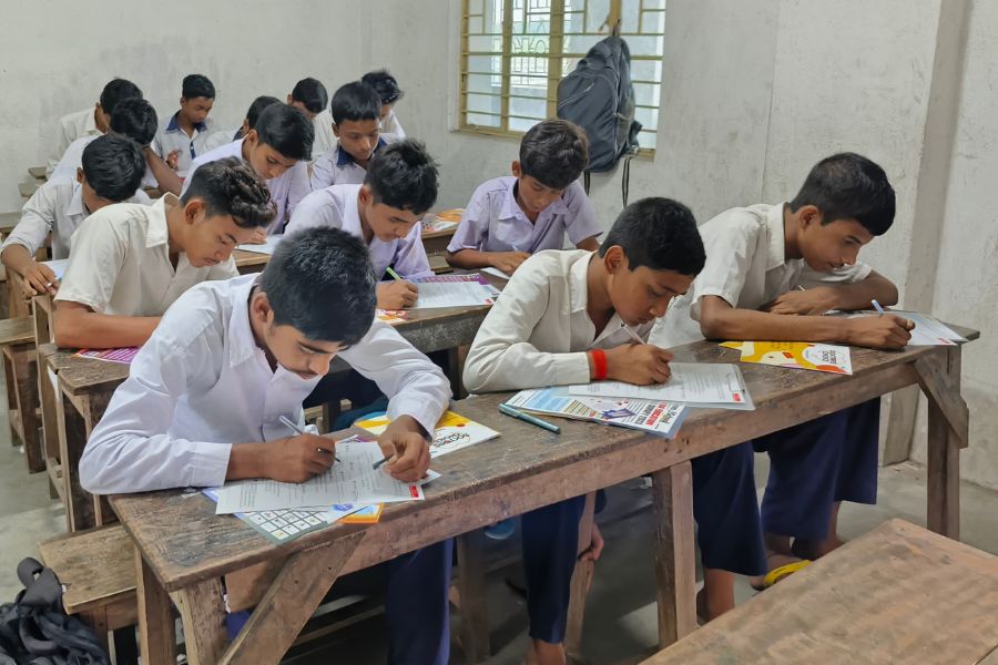 মন দিয়ে প্রশ্নপত্র দেখছেন শিক্ষার্থীরা
